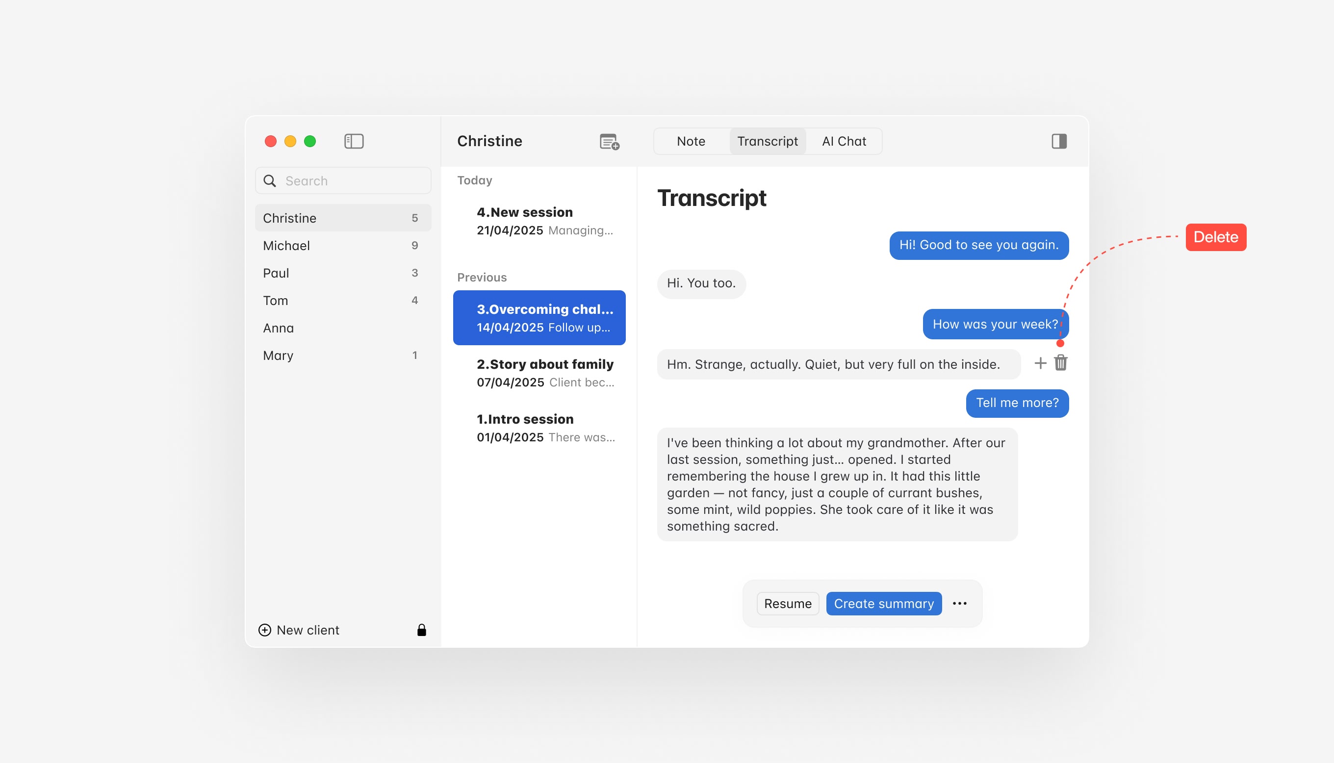 Hover over any line — a Small bin icon will appear. Click it to delete it. You can remove only one line at a time to avoid losing important information.
