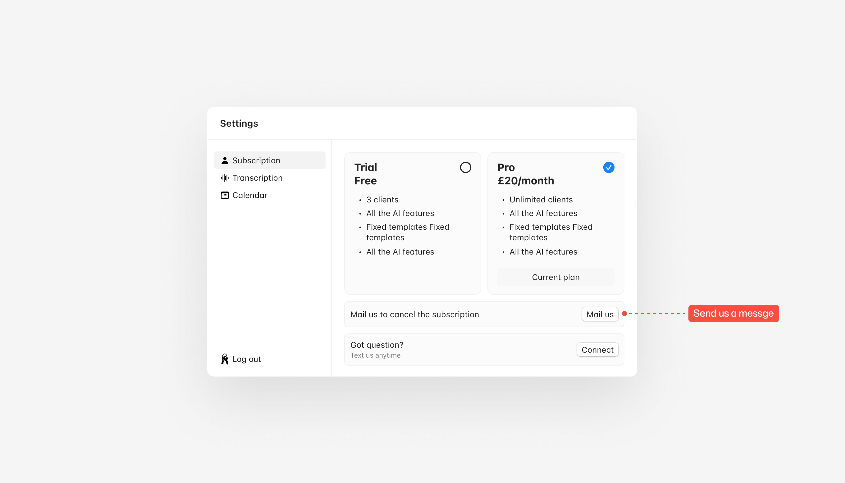If you’d like to pause your plan, just write to us. We’ll cancel it at the spot — your data will stay safe.